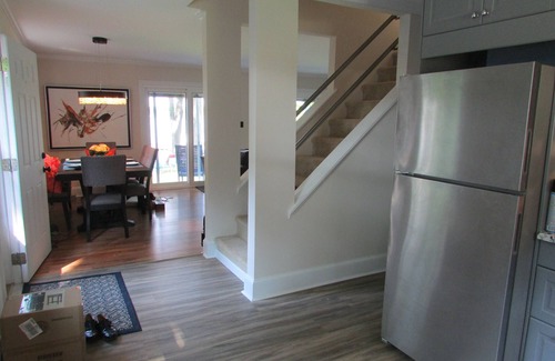 Enjoy cooking in a new kitchen with exotic granite and soft lighting with a new refrigerator, oven, dishwasher and microwave and a dining room table to accommodate 6. Enjoy the beautiful crystal chandelier centerpiece lighting as a focal point while dining. The kitchen has everything and is fully stocked including a coffeemaker, toaster and vitamix blender for frozen drinks or smoothies.