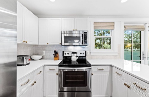 The first floor has a second comfortable living room with a queen pulldown murphy bed, a queen sleeper sofa, comfortable chairs, and a 75" Smart TV. The guest bedroom off the living room has a king bed and a shared newly remodeled bathroom with a shower. Both rooms enjoy private access to the back porch and beautiful views of the large exclusive pool and towering dunes covered in native scrub oak. Two covered, reserved parking spaces are available right next to the first floor entrance.