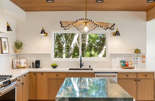 Welcome to Sycamore Villa outfitted with new furnishings, beds, linens and towels! Arrive to be welcomed by the bright and stylish interior, filled with gorgeous furnishings and comfy sofas for evenings of lounging about and enjoying movie night, wine, and sparkling conversations with your friends. We love the delicate balance between muted tones and splash of color throughout – there is just something about this place that is bound to put an instant smile on your face. We think it's because of THE VIEWS!