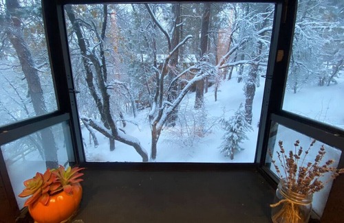 Stairway 2 Heaven is a 2 bedroom cozy home with many nature views located in a quiet neighborhood right next to the National Forest yet not too far from the village. Sleeps 4-Quiet area - Wood burning fireplace-Propane fire pit & BBQ.