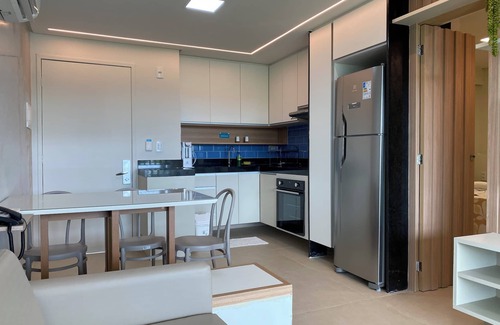 It has: 45m2, with 2 large bedrooms with split air conditioning 9 000 btus, 32 "LED TVs and complete furniture / Cabinets, large living room with single bed, 40" LED TV, Dining Room, Full kitchen with utensils, Cooktop, Microwave, small kitchen appliances, sandwich maker, blender, coffee maker, 120L fridge).