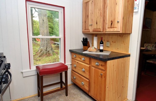 Recently renovated, Starboard Point offers modern amenities, while preserving old camp enchantment. Efforts have been made to create an environment for both a place of retreat and work. A Working fireplace and Wi-Fi through dish TV are two of the amenities offered. The kitchen is effectually equipped for the making of a home cooked meal or an outdoor grill night.