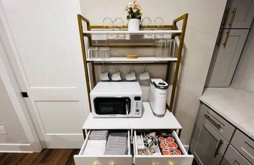 The fully equipped kitchen is perfect for preparing meals and snacks during your stay. Whether you're cooking for yourself or whipping up a romantic meal for two, you'll find everything you need to create a delicious meal.