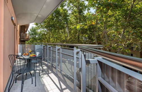 Step out onto your private balcony and start your day with a cup of coffee and a croissant, while watching the bustling activity along Paseo de Fabra i Puig.