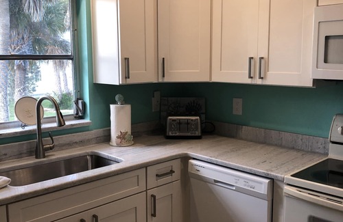 You are sure to fall in love with this newly renovated unit, decorated to match the paradise of Manasota Key. One bedroom, 1 bath sleeps 4. New living room couch opens to a queen size bed. Full living room & dining area. Full kitchen with small pull out island for more counter space. TV in living room & bedroom with cable & internet. Washer & dryer, outdoor grill. Sliding glass door opens to a year round lanai that includes dining table (great area for playing cards or having dinner while people watching!). 2 beach chairs also provided.