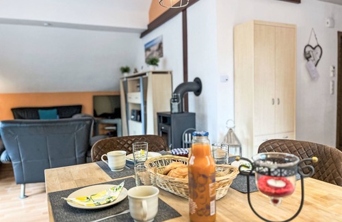 "Sternberg 225/227", 6-room house 172 m2 on 2 levels. Modern and cosy furnishings: living/dining room with Scandinavian wood stove, satellite TV and radio. Exit to the terrace. 1 room with 1 double bed. 1 room with 2 beds. Open kitchen (oven, dishwasher, 4 ceramic glass hob hotplates, toaster, kettle, microwave, freezer, electric coffee machine). Shower/WC. Upper floor: living/dining room with Scandinavian wood stove and satellite TV. Exit to the balcony. 1 room with 1 double bed. 1 room with 2 beds. Open kitchen (oven, dishwasher, 4 ceramic glass hob hotplates, toaster, kettle, microwave, freezer, electric coffee machine). Shower/WC. Electric heating. Large balcony, large terrace. Terrace furniture, balcony furniture. Facilities: children's high chair, baby cot. Internet (WiFi, free). Please note: non-smoking house. Maximum 2 pets/ dogs allowed. Smoke alarm, fire extinguisher. No internal connecting door between the separated properties.