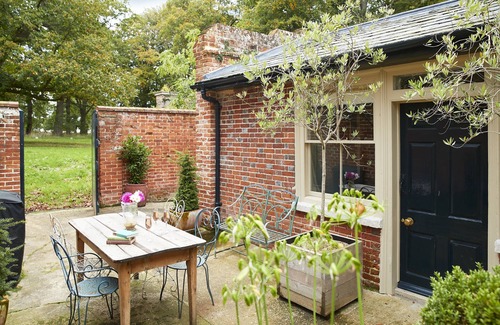 Stewards House forms the North side of the entrance arch to Wolterton Hall. With a charming arrangement of rooms situated around a delightful private courtyard garden, this cottage is decorated in cool 19th century Scandinavian colours and design.
