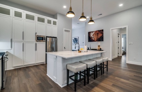 Feel at home in our spacious 4-bed retreat just minutes from downtown Garland. Enjoy modern design, fast Wi-Fi and smart TVs throughout.