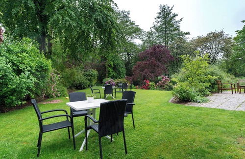 This property offers a shared outdoor area with a garden and barbecue for guests to enjoy.