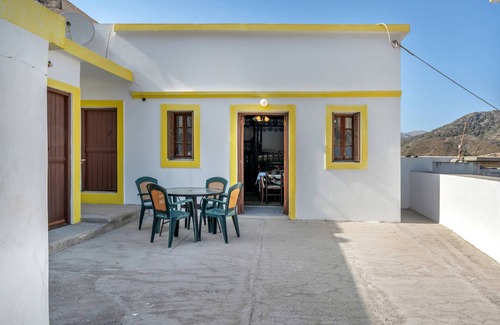 With a view of the mountain, the studio apartment Villa Houvarda in Karpathos is perfect for a relaxing holiday. The 140 m² property consists of a living/sleeping area, a well-equipped kitchen and 1 bathroom and can therefore accommodate 6 people. Additional amenities include high-speed Wi-Fi (suitable for video calls), a TV as well as a washing machine. This accommodation does not offer: air conditioning. This vacation rental features a private outdoor area with an open terrace, covered terrace, and barbecue facilities.