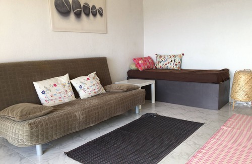 Studio 30 m2 with large terrace. Incredible view, facing the sea and the islands. Equipped kitchenette. Bathroom with bathtub. Comfortable sofa bed and high density foam bench. Beach with transparent water. 5 mins walk from marina-restaurants-shops. Neighborhood of beautiful villas. Very quiet on a street where very few cars pass and parking prohibited. Access possible by plane or train.