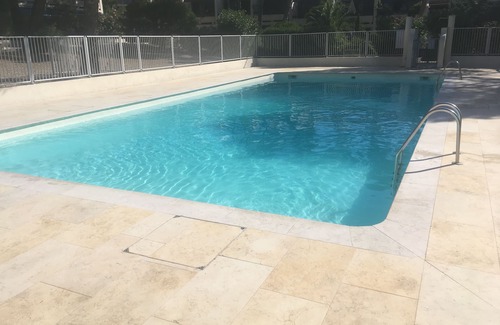 Beautifully decorated studio for 4 people in closed residence with parking space and swimming pool, large terrace of 17m square new garden furniture for 6 people and awning ban to take advantage of it, it consists of a living room with 2 beds New quality BZ 140x190 with duvet and pillows, flat screen tv, lots of storage, kitchen with fridge and freezer equipment, senseo coffee maker, toaster, microwave, gas stove, electric barbecue, cookware, dishes for 8 people, small dish washer 4kg linen, shower room, toilets and basin.