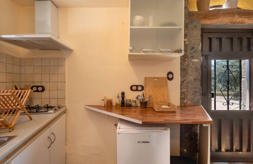 Rustic studio on the ground floor of the Masìa Can Bavi, with independent entrance and view of the Mediterranean. The stone walls, the bed guarantees comfort, a cosy space ideal only for couples. With bathroom and fully equipped kitchen.