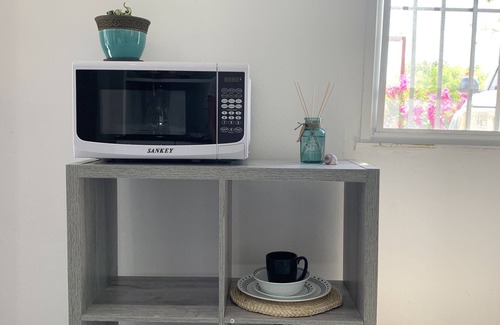 We have a newly, fully refurbished studio. The property is independent of the main house. Free, gated, and fully fenced parking. Pets under 20 lbs. with approval. Brand new furnishings and dishes and pots and pans with outside sink. Full walk-in shower with hot water on demand. New toilet, pedestal sink, and glass shelves for your convenience. We provide an abundance of bath and beach towels. A well-established garden with flowering plants for butterflies and hummingbirds. Double outdoor shower with door for privacy. Large picnic table under the covered terrazo. 3' dipping pool (cleaned and maintained daily). Walk across the street to the black sand on Playa Malibu—distant views of the ocean and mountains. A brisk walk will take you to the river mouth for surfing. Many surf beaches are within a short driving distance. These include Playa Serena, Playa Teta, Palmar, and more. This casita is freshly painted with darkening blinds and brand-new windows. The kitchenette is complete with a full-size fridge, pots and pans, and 2-burner hot plate, and yes! a drip coffee maker. The outdoor sink is a new stainless steel sink with a new faucet. Many potted plants and trees. Lockbox with keys to both the casita front door and the gate. We are onsite most of the time and are happy to assist you at any point.