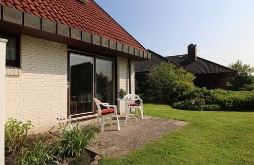 The built in North German style cottage on the outskirts of Garding is quiet and offers an open view of the Eiderstedter landscape. In the middle of the beautiful peninsula in Nordfriesland lies the house of the Grohmann family. Two apartments ('Sonnenblick' u. 'Weitblick') are located on the ground floor, the apartment 'lighthouse' in the attic. A large garden (about 1000 square meters) with terraces and seating areas offer recreation and relaxation. In the center of Garding (about 10 minutes walk) there are various shops and restaurants. The nearby St. Peter Ording (about 15 minutes) offers beautiful beaches and opportunities for wellness and strolling. Garding as well as St. Peter can be reached by regional train. We are a Non smoking house.