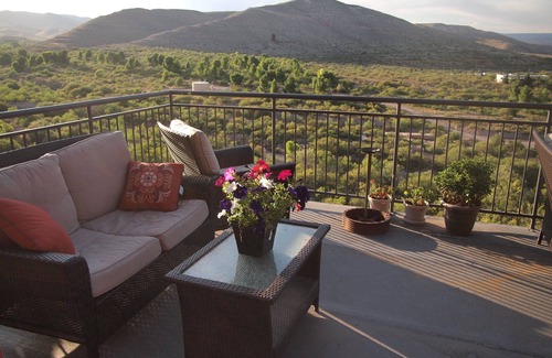 The deck you see in the photos is a large shared area accessed from the upstairs hall. It has gorgeous views and makes a perfect place to sit and have a glass of wine in the early evenings. There is a shaded patio area underneath it on the ground floor for when the weather is too warm to sit in the sun.