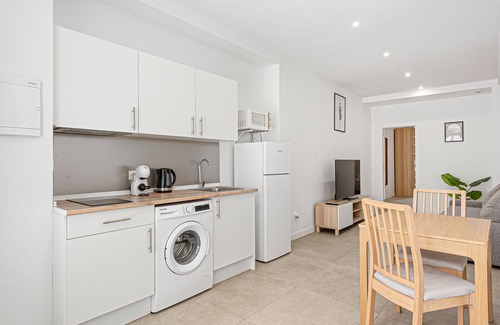 Located in Málaga, this 35 sqm studio welcomes up to 2 guests and features 1 bedroom with 1 bathroom. You will find a shared well-equipped kitchen for preparing your meals. The studio provides private Wi-Fi, air conditioning, TV, and a washing machine for your comfort and convenience. Self check-in allows for flexible arrival times, and public transportation is easily accessible from the property.