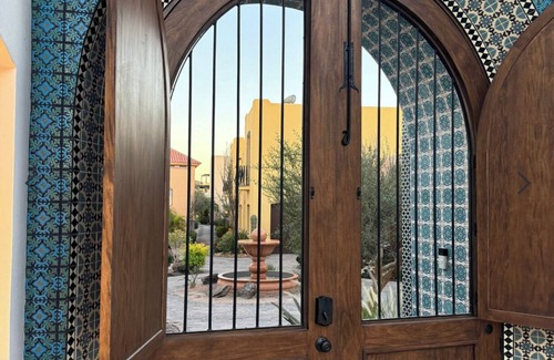 The home is decorated in traditional Mexican hacienda style. All of the furniture is custom made in Mexico. The Mexican Talavera tile is the finest in the country. The artwork has been curated over the last decade from the farthest corners of Mexico.