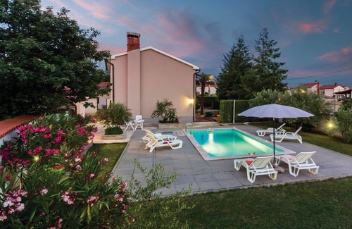 This beautiful holiday home with pool, surrounded by Mediterranean plants, is located in egotici near Duga Uvala. In front of the house there is a traditional Istrian well, which once played an important role in the water supply, but today serves only as a reminder of times gone by. The house is nicely and comfortably furnished and consists of a kitchen, a living room, two bathrooms and three bedrooms. In the beautifully landscaped garden you will find the swimming pool and a covered terrace where you can enjoy cosy evenings with family or friends. The nearest beaches are in Duga Uvala. Be sure to visit the ancient city of Pula with its numerous cultural and historical monuments, museums and galleries, which are well worth a visit. For day trips, we recommend the National Park on Brijuni Island, which will delight you with its beautiful nature.