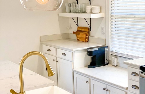 Completely renovated -spacious loft in a quiet/safe neighborhood. Enjoy our huge eat-in kitchen with a 9 ft quartz counter top island, new oven, and shaker cabinets . Beautiful floors. Custom butcher block style office desk. Gather and watch movies on our 50" smart TV. Enjoy a King sized bed with a walk-in closet. The large master bath has a free standing tub, tile shower and tile floors.