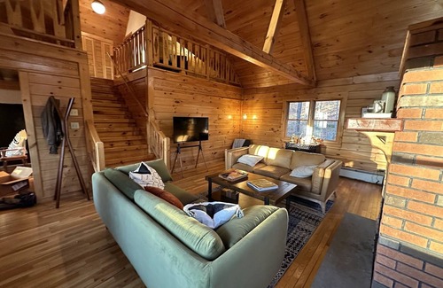 At Amber Lake Chalet, you’ll arrive to a beautiful 4-seasons Lakehouse log cabin modernly decorated with a 30-foot A-Frame ceiling. Weaving cabin feel w/ modern convenience, this home is perfect for hosting friends, a family vacation or romantic getaway. Enjoy private lake-front access, go hiking on private trails, and enjoy a crackling fireplace in Winter. Home space is secluded for privacy, and only 10-minutes from trendy Livingston Manor and it's many attractions. Insta: @AmberLakeChalet