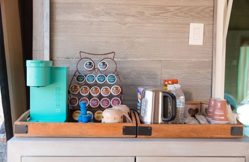 DRINK/FOODA: counter-height refrigerator (with freezer shelf), microwave, and coffeemaker are available in your tent, along with a selection of coffees and teas to be enjoyed. There is no cooking inside or outside of the tent, so plan ahead for meals and snacks. Loving Heart Retreats is located just 12 minutes from the center of Marble Falls, with a variety of local restaurants, taprooms, and grocery options.