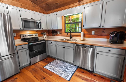 Welcome to The Oaky Bear! Enjoy breathtaking mountain views from this beautifully updated log cabin. Escape the everyday hustle and breathe in the crisp, fresh air of the Blue Ridge Mountains. This cozy 2-bedroom, 1-bath retreat features a newly updated kitchen with modern appliances, a stone fireplace, plush beds, and stylish décor—creating the perfect setting for your well-deserved getaway. Spend your evenings unwinding by the fire, soaking in the stunning, unobstructed mountain views.