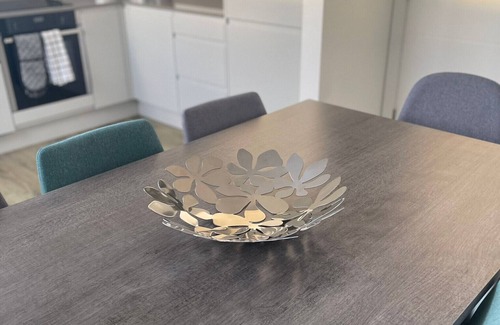 Prepare delicious meals in a fully equipped kitchen and gather around the beautiful dining table (+ admire the gorgeous view while enjoying your dinner!). The kitchen has an electric hob, oven, fridge/ freezer, kettle and cooking equipment.