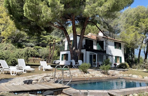 Beautiful cottage "Villa la Vigna", detached, surrounded by trees and meadows. 1.5 km from the centre of Torrazza, on the outskirts, 5 km from the centre of Imperia, 25 km from the centre of San Remo, in a secluded, quiet, sunny position, 5 km from the sea, in a cul-de-sac, in the countryside. Private: natural state property 5'000 m2 (fenced) with trees, meadow, lawn for sunbathing, swimming pool (8 x 4 m, seasonal availability: 09.May. - 17.Oct.). Garden furniture, fireplace. Motor access (100 m via unmade road). Parking (for 3 cars) on the premises. Supermarket 2.5 km, restaurant 2 km, bar 2.5 km, bakery 5 km, café 5 km, bicycle rental 5 km, railway station "Imperia Oneglia" 12 km, sandy beach "Spiaggia d'Oro" 6 km pebble beach 5 km, indoor swimming pool 7 km. Marina 6 km. Groups of teenagers on request only.