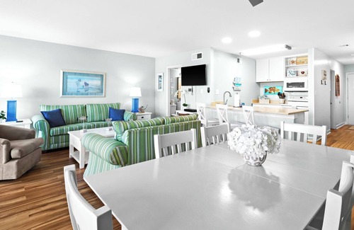Open-Concept Living & Dining – Filled with natural light and cozy coastal furnishings, perfect for relaxing or entertaining.