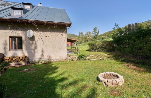 Černý Důl, a cosy country house, is a semi-detached holiday rental in Vrchlabí, Czech Republic. It offers a private garden of 130 m2 with furniture and a fireplace, ideal for outdoor relaxation. The property features Internet Wifi, central heating, and parking facilities. Enjoy the convenience of being just 400 m from the town center and 800 m from the skiing area.