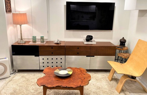 Please note that the home currently has scaffolding on the façade. An oasis in Washington DC's historic and sought-after Georgetown. This apartment is located in a stately brick Victorian home in the heart of Georgetown's East Village. The apartment is a brand new renovation, as such it features all new furniture, appliances, kitchenette, bath and floors. Professionally decorated in a stylish yet sophisticated style, and thoughtfully furnished with your comfort and enjoyment in mind. Bedroom features a double bed, dresser, and small closet. You will find a dining table for 2, a full size leather sofa, side chairs, wall mounted TV with Apple TV service in the sitting area. Tucked in a corner is cozy work area with standing desk. The kitchenette features microwave, small convection oven, steamer, toaster, coffee maker plus all the dining and cookware you will need. We all need outdoor space, this apartment shares the back patio plus there re two chairs on the sidewalk at your entrance, pause to relax here and watch the denizens of Georgetown stroll by.