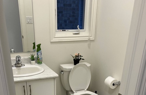 This 4-bed semi-detached house is BRAND NEW, stylish, chic and charmin!. It is a perfect escape from your day-to-day! Every inch of our space is designed with comfort in mind from the plush linens to the gourment kitchen. Enjoy flexible self-check-in via keypad and the free Wi-Fi is FAST: 3 Gbps. Great for families, remote workers, 10-min walk to Bruce Trail, Free parking, Mins to downtown, groceries, buzzing restaurants (Walmart, Costco, Nofills, Dominos, Keg steakhouse, Indian Hut)
