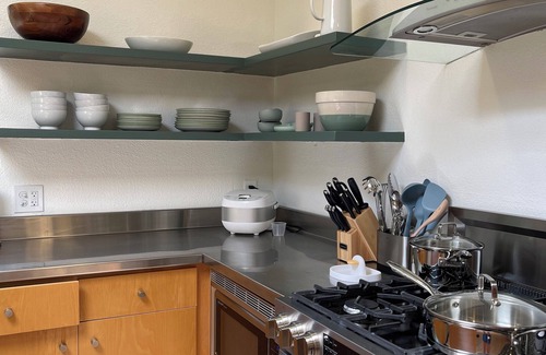 The kitchen has a subzero fridge and gas stove. Quality furnishings and housewares have been sourced from CB2, West Elm, Pottery Barn, Williams Sonoma, and other name brands. There are 5 beds total between all 4 bedrooms.