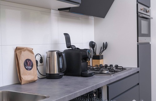 Upon entering, you'll be greeted by a large, cozy living room that invites you to relax. Enjoy a comfortable evening with family or friends in this warm atmosphere. The open kitchen is fully equipped, making it perfect for preparing anything from quick meals to elaborate dinners. Modern appliances such as a dishwasher, microwave oven, and a 4-burner stove are all available to make your stay as enjoyable as possible.