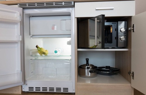 In the kitchen you will find a microwave with grill function, a coffee machine, a kettle and a basic set of dishes, cutlery, pots and pans, as well as all kinds of spices and things of everyday life.