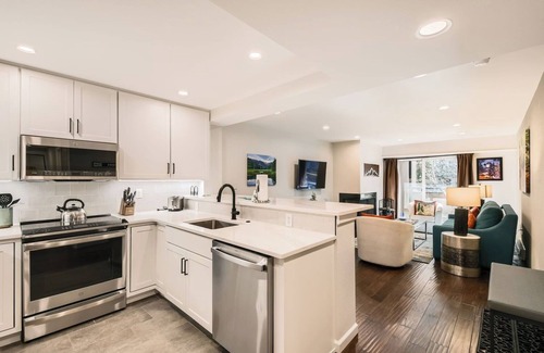 living room, and kitchen stocked with all the gear needed to fuel up for long days on the mountain. Just