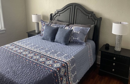 This home requires walking up to the second floor of a duplex home. This home has plenty of room to spread out with 3 bedrooms, 1 large common area to relax or watch TV, and plenty of dining space. Updated stylish furnishings with an included arcade area for entertainment. This is the upper level of a duplex. Since it is a restored historic home with wood flooring, you may hear guests walking from time to time. They will also be able to hear you so please be accommodating to those guests. Enjoy the complimentary bottled water and snacks at check-in.
