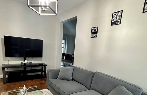 Relax in a living room that radiates generosity and charm. The house offers two living rooms and one family room including a TV room that has an 77” OLED screen and a cinematic sound system. The primary suite includes a gorgeous master bedroom which has a masterful L shape desk facing the outdoors and a monitor. The suite bathroom offers, oversized shower and tons of closet space. All other bedrooms have plenty of space for sleep, work & play. A majority of the home has gleaming hardwood floors & tons of windows that flood the space with natural light. The fully equipped modern kitchen awaits, stocked with all the essentials including cooking basics. The fully finished basement level offers a living room, which includes the movie room, PingPong and Pool table, indoor gym, board games, cards, and includes a full bathroom. Step outside to the vast and open yard with a charming gazebo, a barbecue to enjoy with family, a soccer goal for playful afternoons, and a variety of outdoor games. Cherish the dining on the massive Patio or Deck, furnished with comfortable seating amidst the beauty of nature. All the peace and quietness you are looking for in a home that has been charmingly decorated and furnished using imperishable materials, earthy colors, and lounge-like comfort.