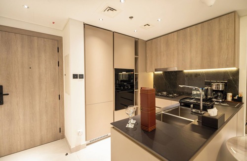 Discover Ultimate blend of luxury and comfort in our one-bedroom apartment. With stylish design, featuring a cozy living area with a smart TV, a fully equipped gourmet kitchen with top-notch appliances, and a serene balcony with stunning pool views. Retire to the sumptuous king-sized bed in the beautifully appointed bedroom, complete with ensuite and guest bathrooms for added convenience. Experience a truly memorable stay where every detail is crafted for your comfort