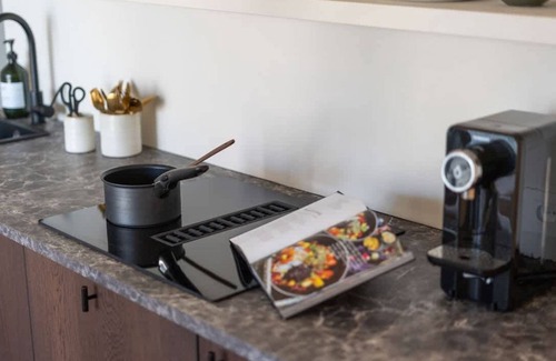 Suite C is a beautifully and stylishly furnished apartment in the heart of De Panne, boasting an immediate sea view upon arrival. The large sliding window creates an open, airy atmosphere and floods the space with natural light. The open-plan living room and kitchen, designed in a calm and elegant style, lead directly onto the balcony, where you can relax and make use of the electric BBQ provided.