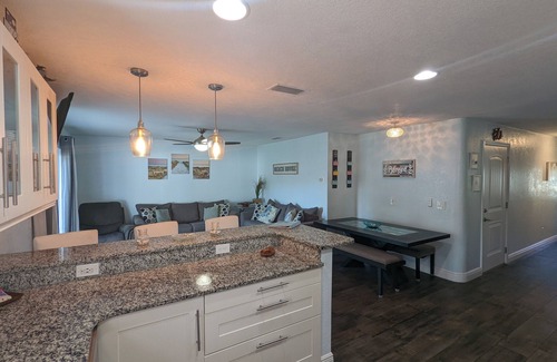 Sun & Surf Beach House - Family Friendly - Steps to the Beach has 3 Bedrooms , 2 Bathrooms, and max occupancy of 10 people. The minimum rental for this property is 1 nights, but this can change depending on the season you plan on staying. Previous guests have given good rated it, and VRBO labeled it a top-rated House because of the excellent services rendered by the owner or manager of this House, and has consistently provided great experiences for their guests. Most families or guests that use it recommend it to their friends and some of them are repeat guests. House has a friendly neighborhood, and the New Smyrna Beach has interesting places to visit. If you want to learn more about the House in New Smyrna Beach, such as places to visit and things to do nearby, you can check below to learn more.