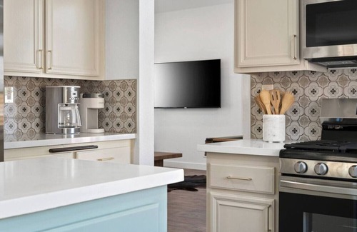 This home accommodates up to 14 guests with 5 bedrooms and 3 bathrooms. Additional spaces include a fully stocked kitchen, living room, dining room, den, laundry area, and garage. Our kitchen is stocked with an extensive list of small appliances, cookware, dinnerware and utensils needed to prepare almost any family meal. We provide a starter kit of seasonings including salt, pepper and olive oil. Please inquire with our team if you would like a complete list of all our cookware and small appliances.