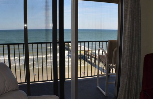 Daytona Beach Ocean Views – This is what Florida vacation rental is all about! The best view at the condominium is from the large balcony that can be accessed from both the living room and kitchen/dining area. It provides a panoramic view up and down the beach and out to sea. Dolphins are regularly seen swimming out front and a rare whale has been spotted. Don’t feel like cooking? No problem – Crabby Joe’s restaurant is right next door on Sunglow Pier. They offer delicious breakfasts, lunch, dinner or go for just drinks and appetizers. You can also rent fishing poles & fish right off the pier – no fishing license is required.