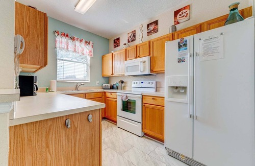 Step into this inviting two-story townhome, designed with families and vacationers in mind. The first floor features an open-concept kitchen, a comfortable TV room, and laundry area for your convenience. From the patio, enjoy west-facing views of the lake and fountain, the perfect backdrop for Florida sunsets. A queen en-suite bedroom on this level provides privacy and comfort for guests.