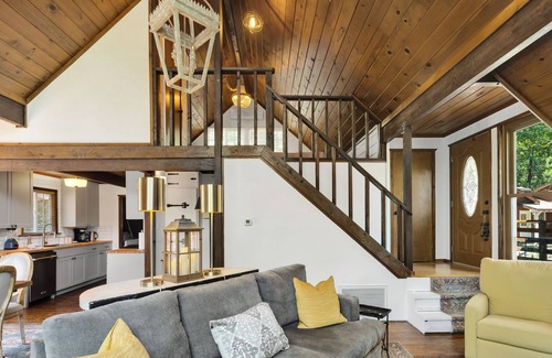 This contemporary loft style cabin is exquisitely designed and outfitted for a dream winter wonderland escape. Walk in on the most welcoming and cozy open living space with access to a separate loft for your guests.