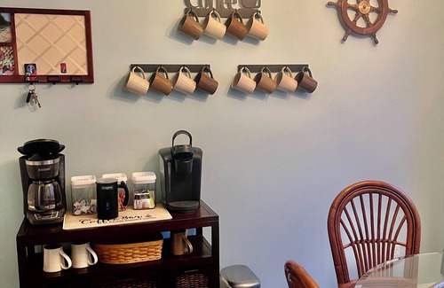 Coffee Bar: w/starter Keurig cups/creamers/sweetner/teas provided.