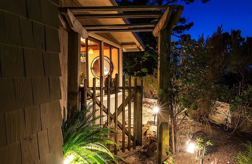 Just added a 4th bedroom which now includes a gorgeous hand-carved bed from India made out of an antique hand-carved door as the footboard. Just completed more amazing upgrades to the house. Imagine a roaring fire in a gorgeous outdoor stone fireplace, listening to your favorite music on the outdoor sound system, grilling your favorite food, having a glass of wine, and visiting with your family or friends. That is what you get when you stay at my fabulous home in gorgeous Pacific Grove.