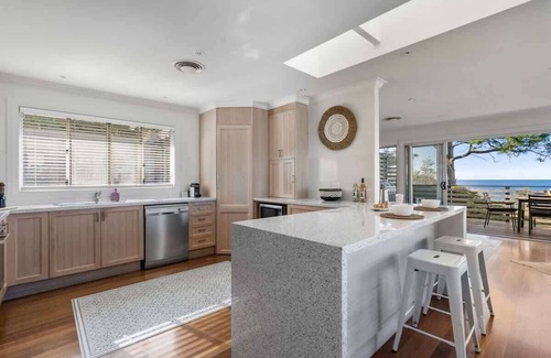 Coastal-styled North Mollymook home with panoramic beach views. Modern kitchen, outdoor entertaining. Walk to cafes & surf spots.