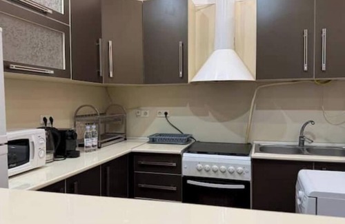 Apartments on In Yerevantsu Street 2 are the perfect choice for those seeking a combination of comfort and prime location in the very heart of the city. These apartments offer easy access to major attractions, popular restaurants, and fashionable boutiques, making your stay truly convenient and enjoyable. The spacious layout includes a bedroom, a studio-style living room, a bathroom, and an open balcony. The kitchen is fully equipped with all necessary appliances: refrigerator, gas stove, microwave, washing machine, dishwasher, and a complete set of cookware and tableware. In the living room, you will find a dining table, a sofa bed, a TV, and air conditioning — everything you need for relaxation and comfortable meals. The bedroom features an orthopedic mattress for a healthy sleep and its own TV for evening entertainment. The bathroom has a modern shower cabin and comes with premium towels and toiletries. For your convenience, the apartment is also equipped with a vacuum cleaner, iron, and ironing board. A cozy balcony is perfect for enjoying your morning coffee with a view of Northern Avenue. Additional amenities include high-speed internet and 24/7 security to ensure your peace of mind and comfort. These apartments are an excellent choice for those who appreciate impeccable rest and the vibrant city atmosphere in comfortable surroundings.
